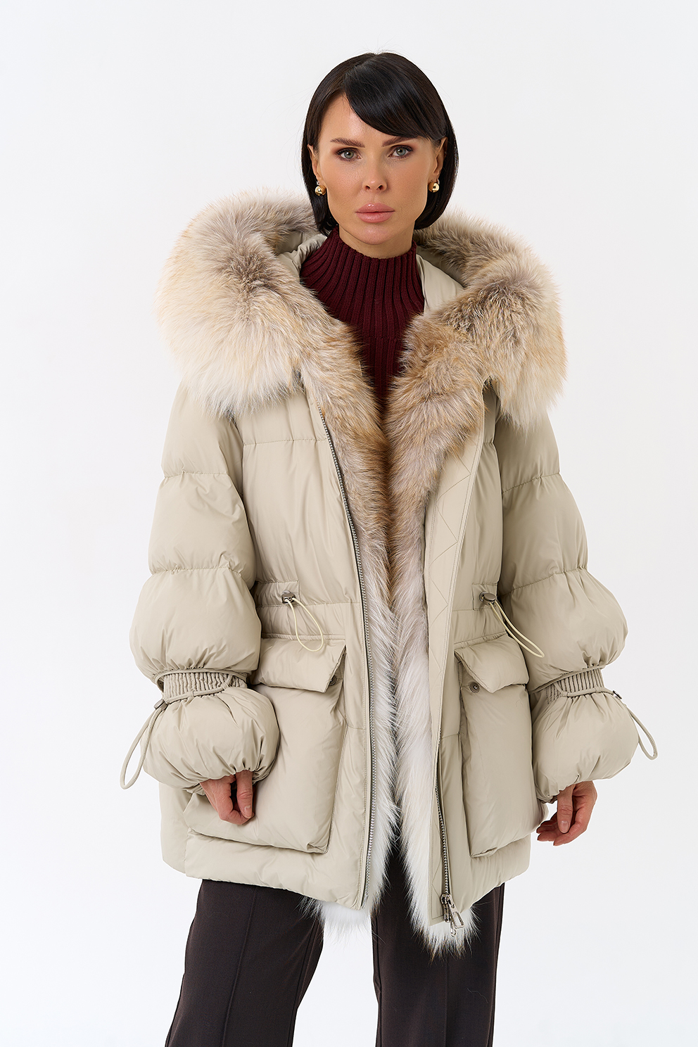 Крой воротника - капюшон, отделка лиса