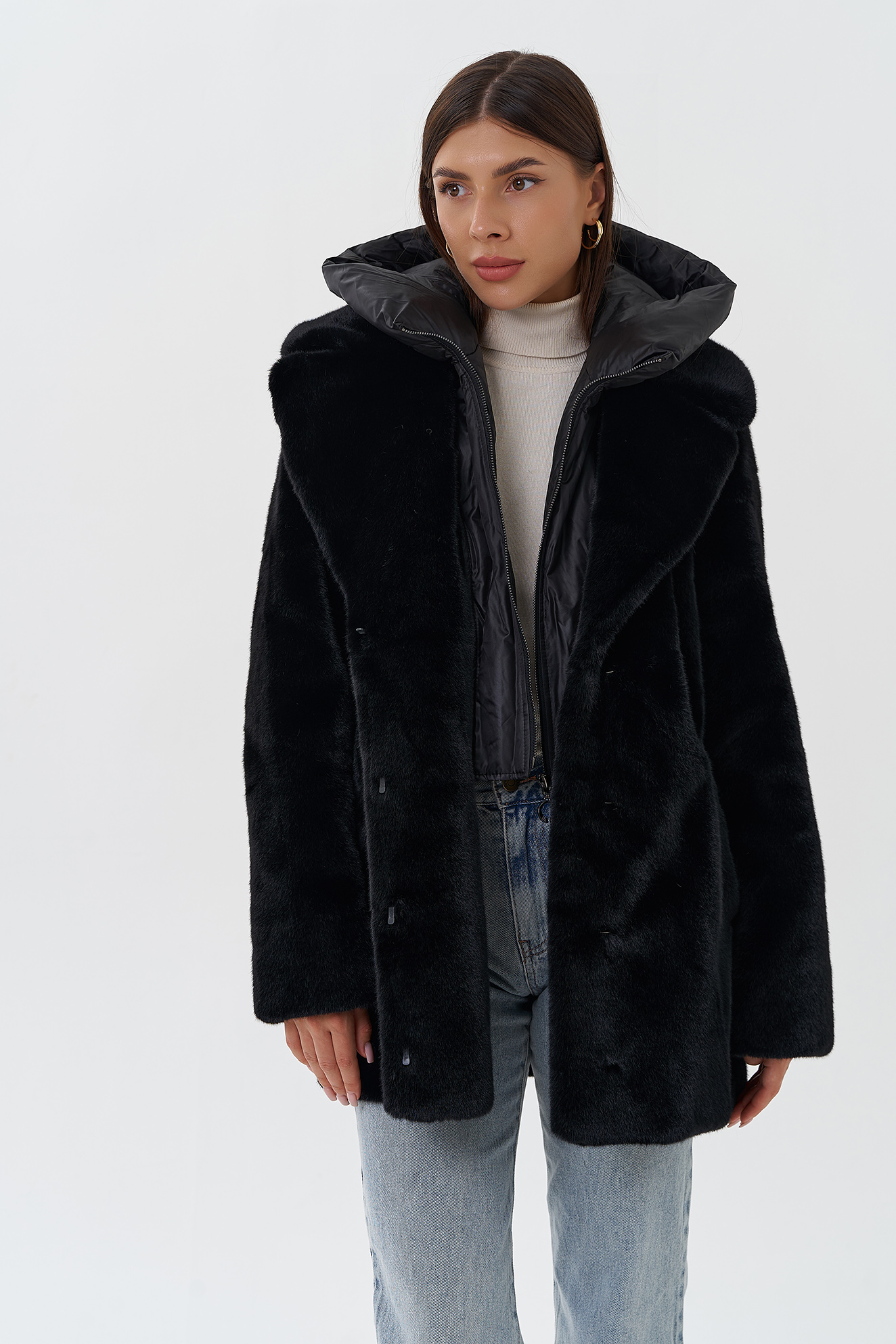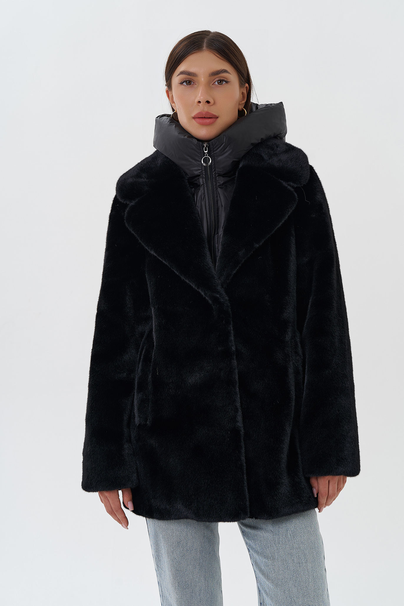 Вид ворота - капюшон съемный, английский воротник