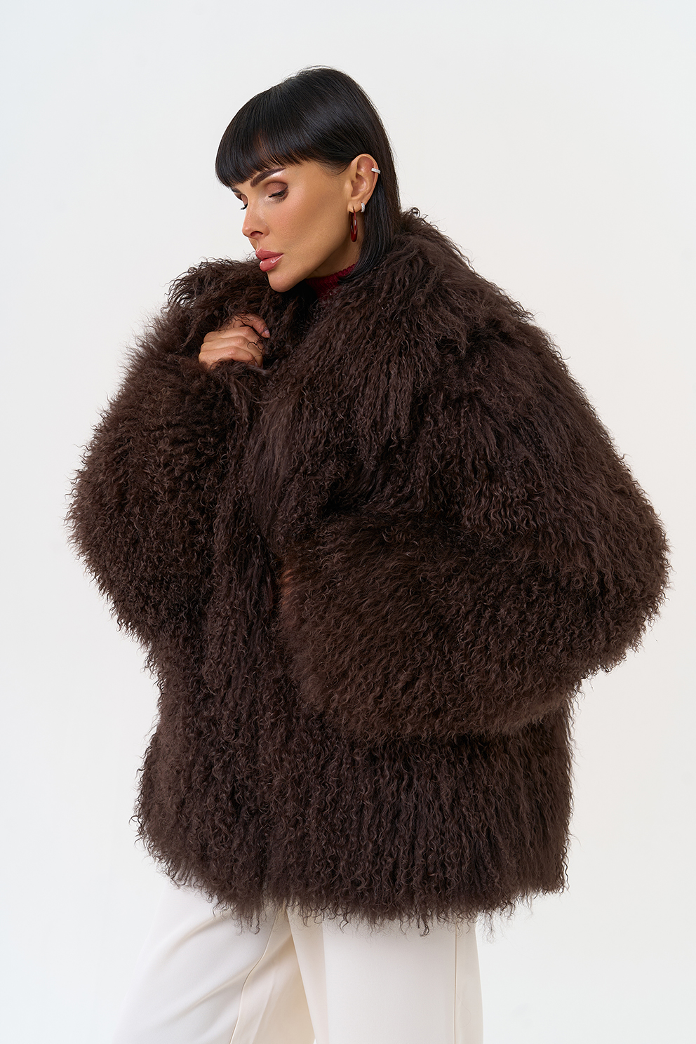 Женская шуба из меха ламы (коричневый)